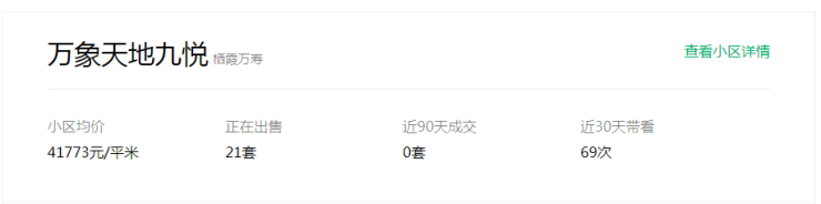 另外万象天地九悦也传来了第一套二手房成交的消息,一套124㎡的2楼,以433万元总价成交,折合单价不到3.5万/㎡。