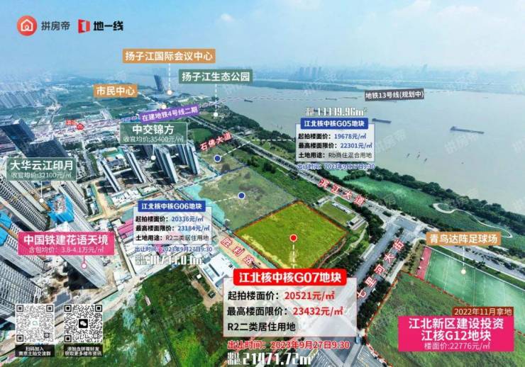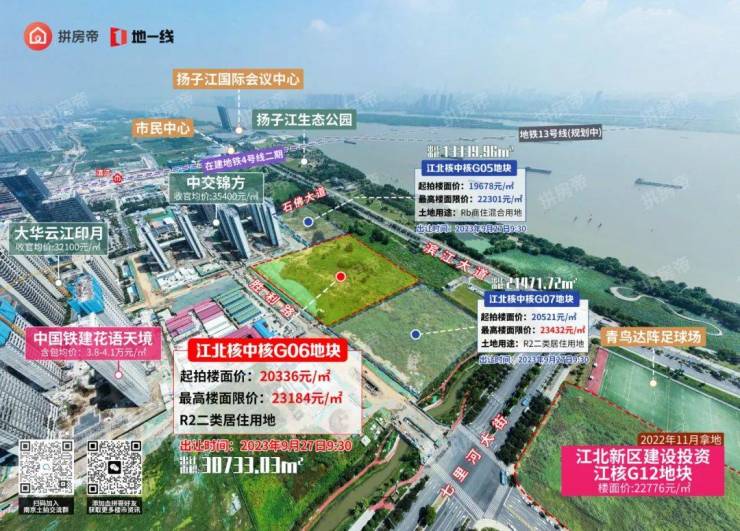 其中G05、G06、G07地块位于滨江第一线,三幅地块分别南北相邻,该批地块紧邻扬子江生态公园,可尽享滨江景观风貌。