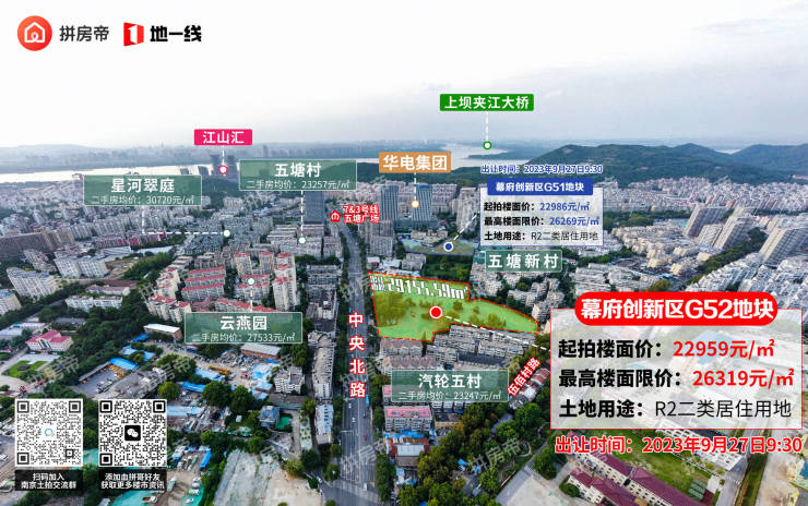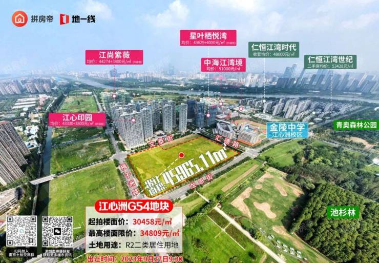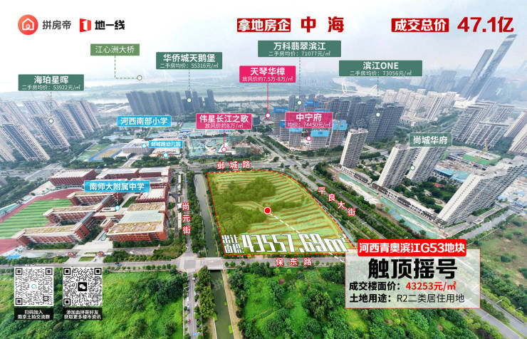 G53地块预计成交总价将达到47.1亿元,楼面价将达到43253元/㎡,直接赶超一路之隔的伟星长江之歌(楼面43173元/㎡),成为南京“第二贵”地块!