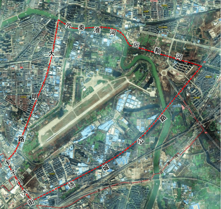 南部新城北至外秦淮河、运粮河, 东南至绕城公路, 西至大明路、卡子门大街,总用地面积约10平方公里,规划居住人口约15万人。