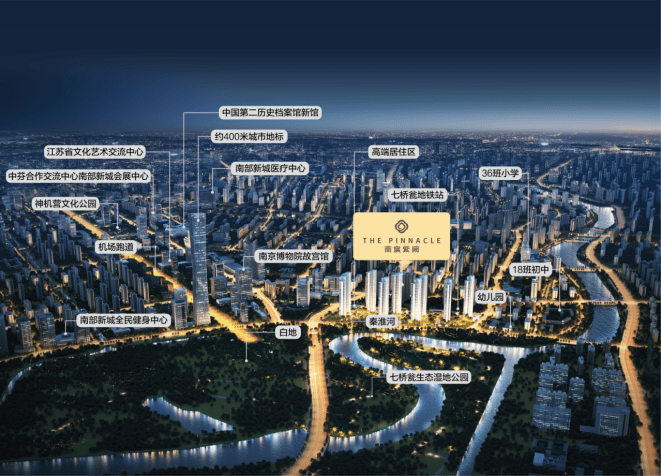南宸紫阙,作为板块内离秦淮河咫尺的项目,东瞰一线秦淮,脉连南京大校场、七桥瓮、中华门一带文脉资源,划定南部新城高端居住区。约500m为尺进一步凝练高阶资源,列席城市的前排观景台!