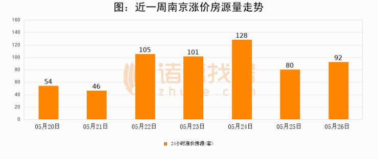根据诸葛找房数据显示,南京24小时涨价房源量为92套,较05月25日增加12套,环比上涨15%。与此同时,涨价房源占比小幅扩大,业主信心有所提升。