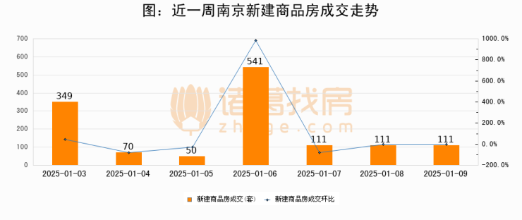 根据南京市住房保障和房产局数据显示,2025年01月09日南京新建商品房成交111套,较昨日持平