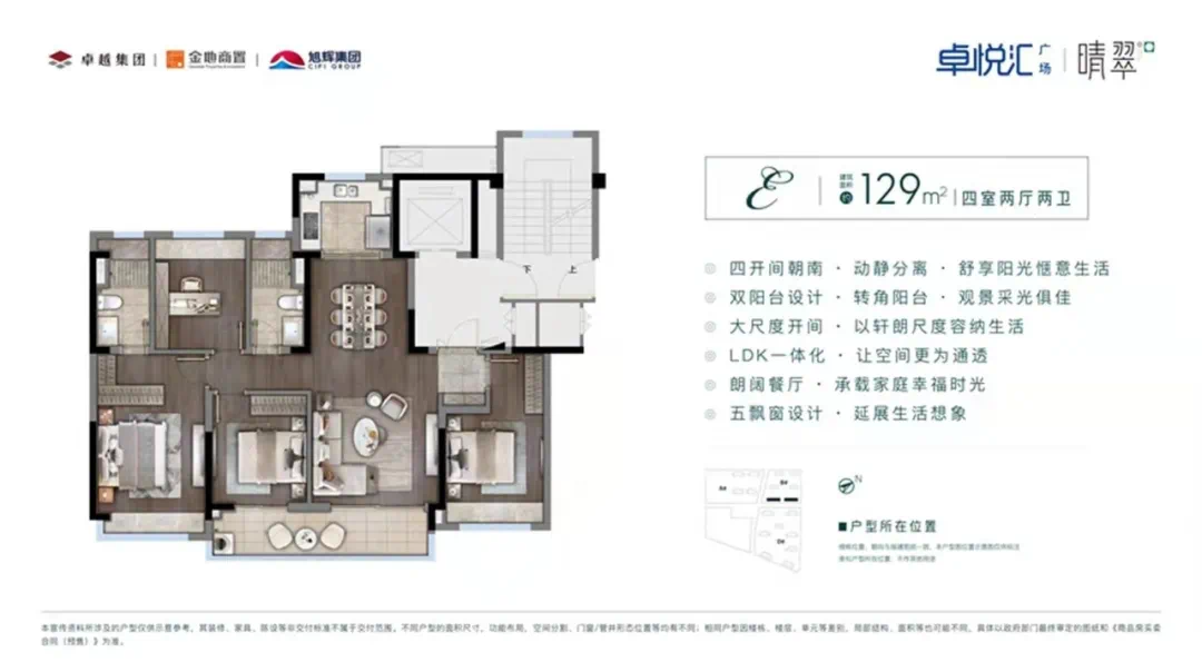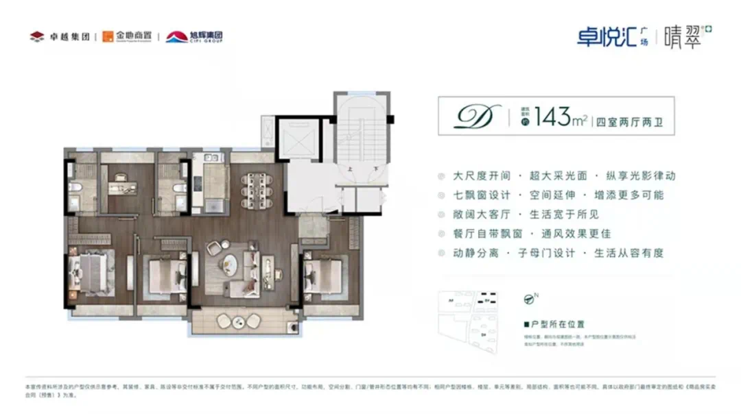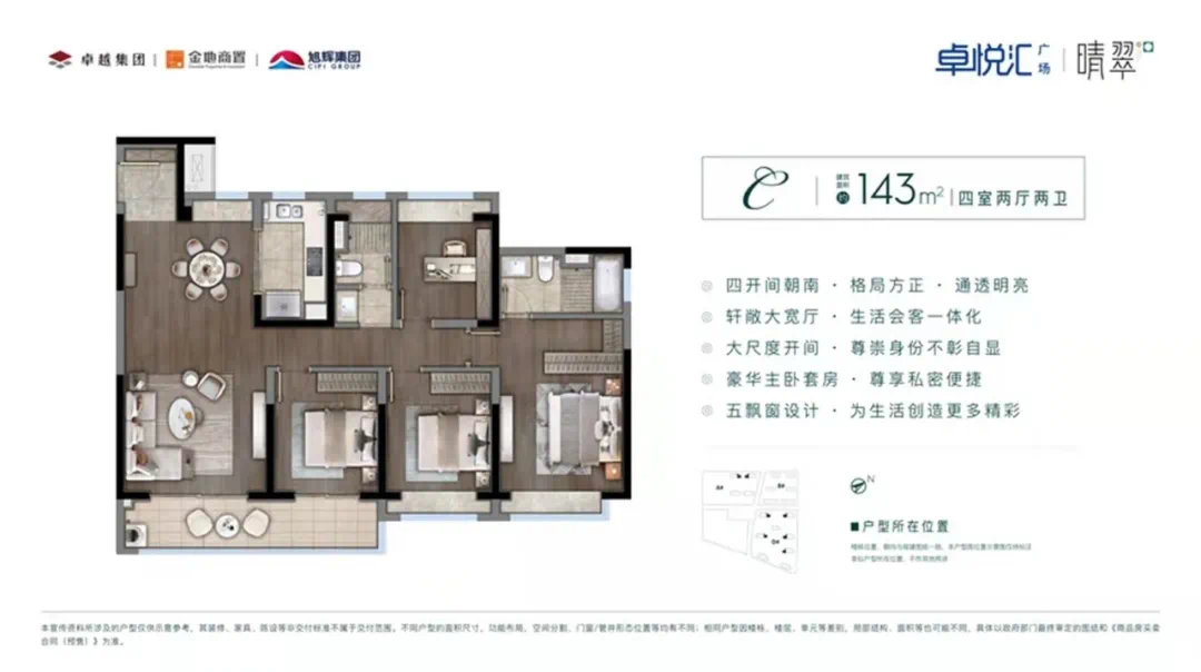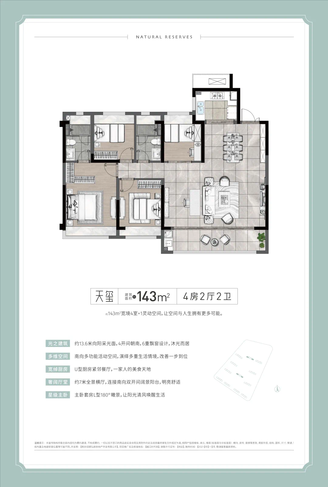 除了刚刚公开样板间的143㎡户型外,项目还有5个户型面积段,分别是112㎡(三房两厅两卫)、127㎡(四房两厅两卫)、129㎡(四房两厅两卫)、143㎡(四房两厅两卫)、165㎡(四房两厅三卫)。