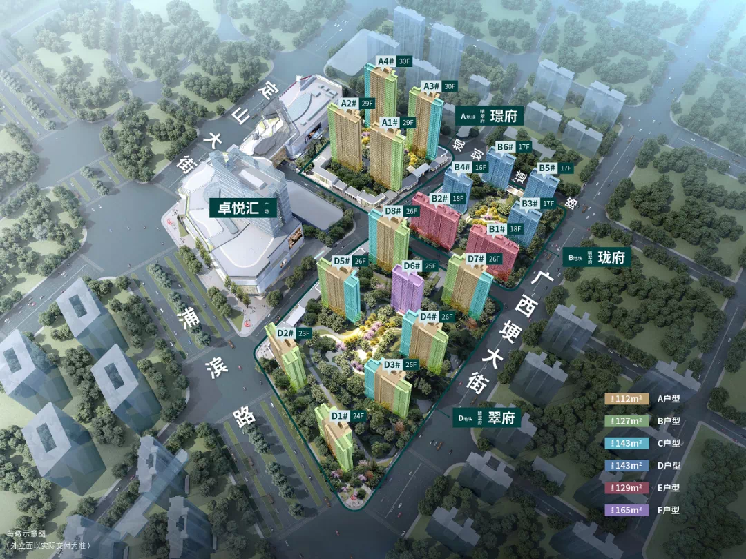 规划拟建18栋15-29层高层住宅、一座商业综合体以及一座总高150米的公寓楼。另外,商业部分已命名为卓悦汇广场,将引进京东超级体验店。