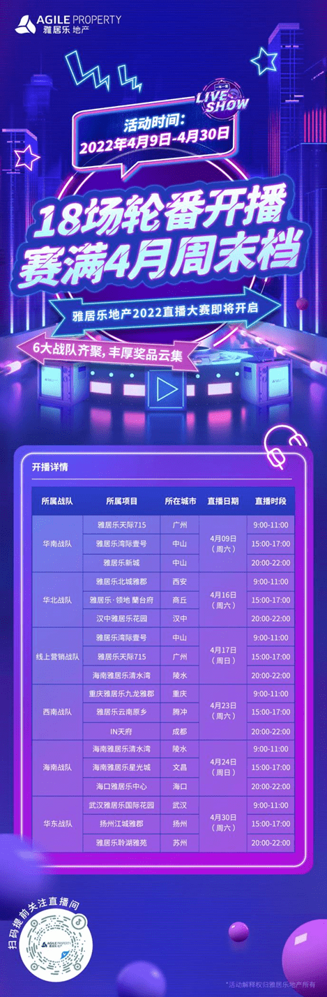 不妨定好闹钟、选定支持队伍,一起守在直播间前,为雅居乐地产打call吧!