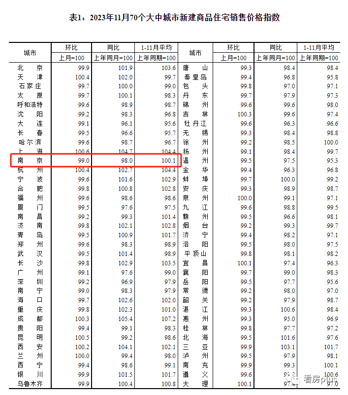 今天上午,国家统计局最新发布了2023年11月份70个大中城市商品住宅销售价格变动情况统计数据。其中,11月南京新房价格环比下跌1%、同比下跌2%,二手房价格环比下跌1.4%,同比下跌5.4%。