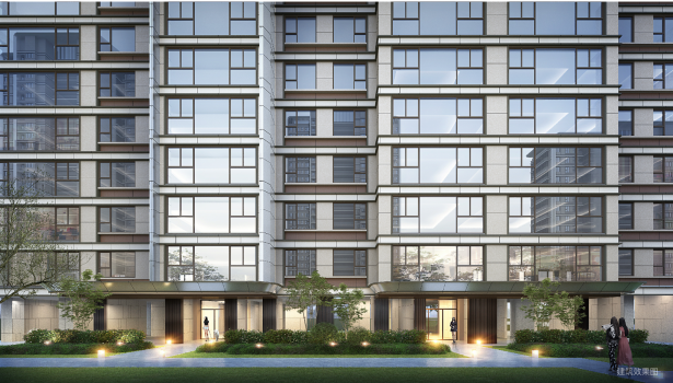 据悉,该项目一共打造了12栋24-27层住宅,产品户型面积段为建面约110、128、143㎡,还自带约3800㎡集中商业。同时小区采用错落式布局,打造约6.6万方生态共享「温度」社区,5重入户礼序、超大中央客厅、3大主题乐园、4大架空层泛会所等社区配套礼遇生活。建筑立面设计采用包豪斯现代简约风,具有非对称、流动性的特点,以超高窗墙比打造极简立面。