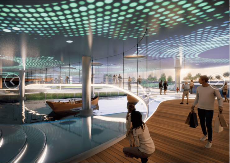 项目设计方面,江北砂之船串联沿河景观区域,融合砂之船景观设计风格规范。