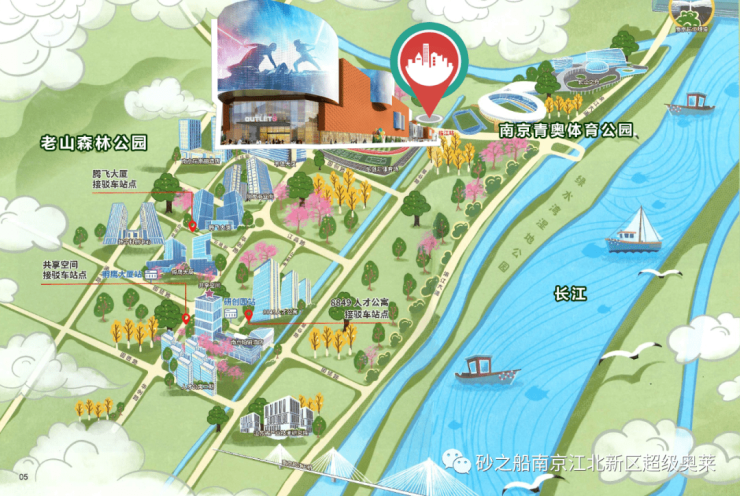 砂之船(南京江北新区)超级奥莱位于江北新区产业技术研创园内,总建筑面积约22.5万平方米,其中商场面积超10万平方米,由两栋高层写字楼及酒店式公寓及一栋商业楼组成。