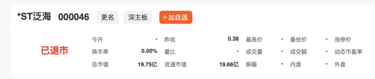 2月7日,*ST泛海(下称泛海控股)公告,公司股票已被深交所决定终止上市,当日摘牌。