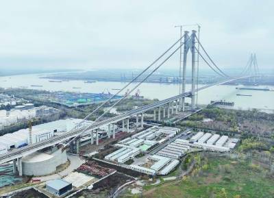 仙新路过江通道由跨江大桥、乌龙山隧道、南北引桥、南北锚碇等组成。今年9月23日,大桥主桥的97榀钢箱梁全部吊装完成,全桥实现合龙。
