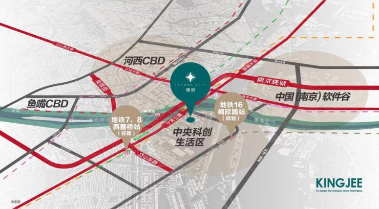 仰仗约130M宽秦淮新河黄金水岸地段优势,金基·雅玥所距河西CBD仅一河之隔。伴随着岱山东路北延线(在建)、地铁7号线(在建)等多维路网加速建造,落成通车后中央科创区与河西将消弭物理空间上的距离,一步通达河西。