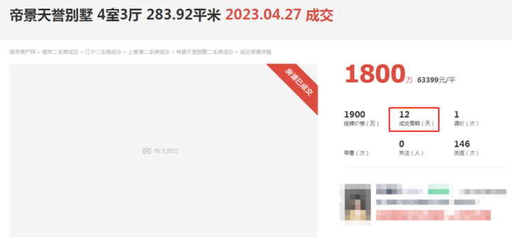 江宁最近也卖出不少高端豪宅,比如上秦淮的帝景天誉成交了一套建面约283.92平4室3厅类独栋产品,该套房源挂牌总价为1900万,最终以低于挂牌价100万的价格成交,成交均价为63399元/平,创小区历史新高,而且成交周期仅12天!