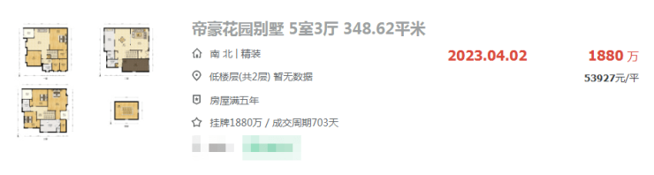 紫金山的帝豪花园别墅在4月卖出了一套总价1880万的别墅。