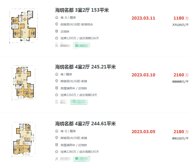值得一提的是,今年海玥名都已经成交了多套总价超千万的房源,其中还有不少2000万以上的,单价都接近9万/平!