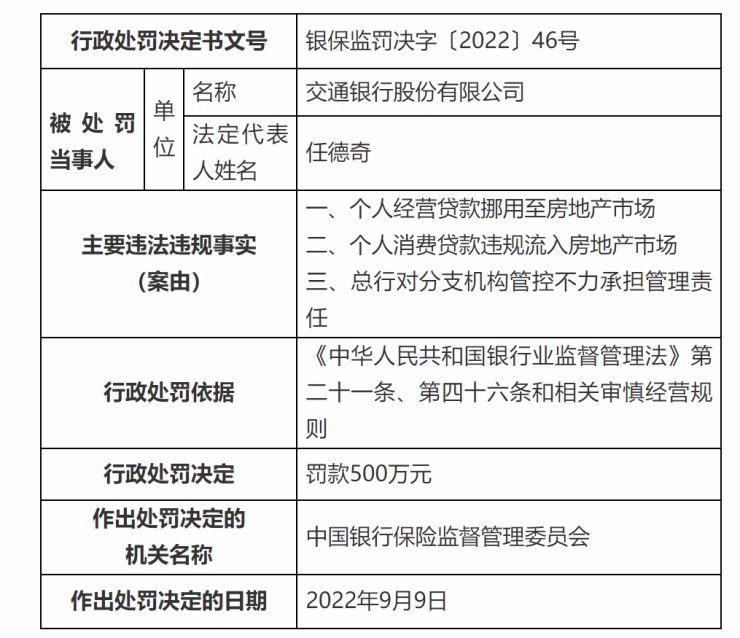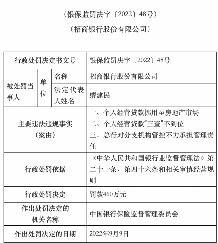 值得注意的是,就在11月4日,中国银保监会披露了数张罚单,处罚原因与个人经营贷款挪用至房地产市场有关。其中,招商银行、交通银行分别被罚款460万元、500万元。