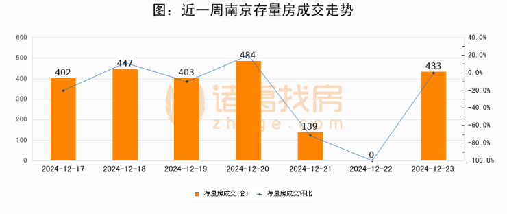 【南京成交日报】12月23日新房成交424套、二手房433套;涨价房源14套