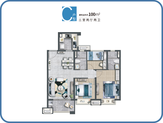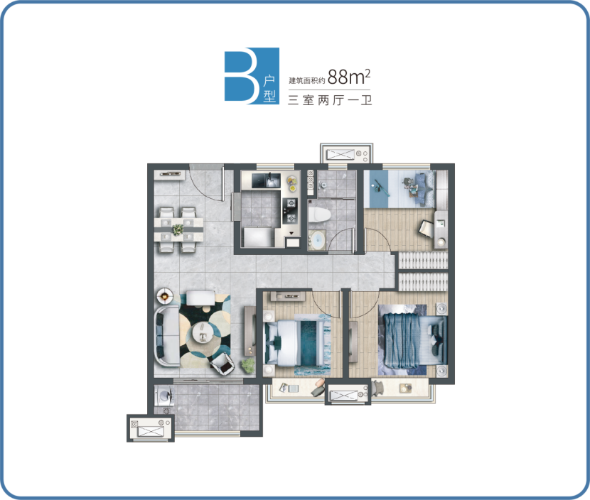 从社区规划来看,项目打造了28栋高层(20F)及45栋低密度多层住宅产品(6-9F),建面约88—110㎡三房户型,每个户型都做到了全明方正、三开间朝南、动静分区、U型厨房、餐客厅一体化设计,精装修全墙纸交付。