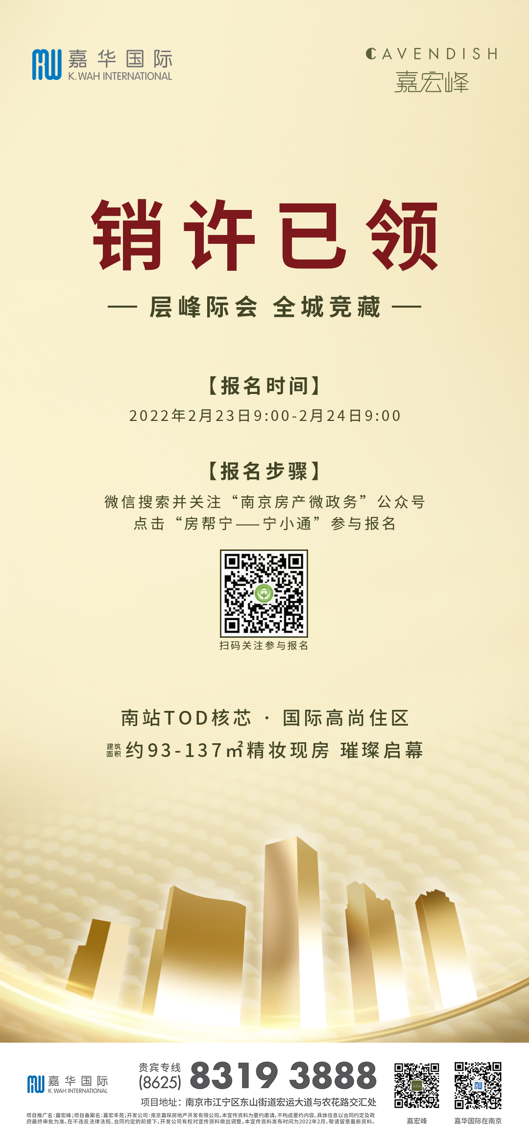 细数目前的南京新房市场,现房项目已经屈指可数,更何况是没有精装包的产品?而且目前南站片区的二手房基本已经站上5万+,相比之下嘉宏峰还存在不小的倒挂空间!也正因为此,大批买房人早已盯上项目的开盘!目前项目销许已领,报名时间2月23日9点到2月24日9点,仅有一天!大家一定要抓住机会!