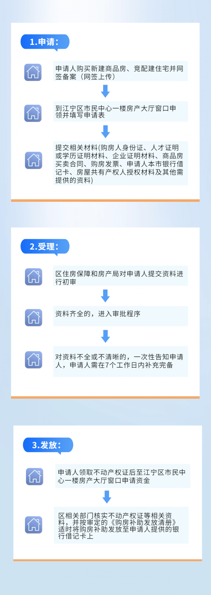 领取——申请人取得不动产权证后至江宁区市民中心一楼房产大厅窗口申请领取补助资金。