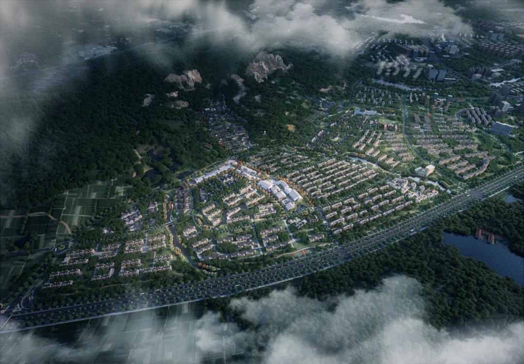汤山温泉康养小镇便坐落于此,北边依靠群山,南部地势开阔,内部三条水系贯穿,从朝向来看,小镇整个地块向阳,日照时间较长,为未来小镇宜居生活奠定了良好的先决条件。