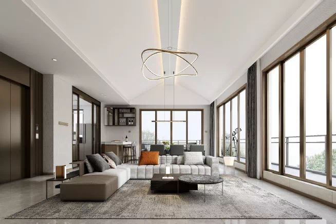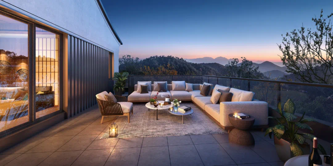 项目效果图山景套房设计,拥有大面景观窗套房,依山而居,诗意休闲会友。穹顶式客厅:艺术馆般的空间挑高,落地移门、L型双面视野。