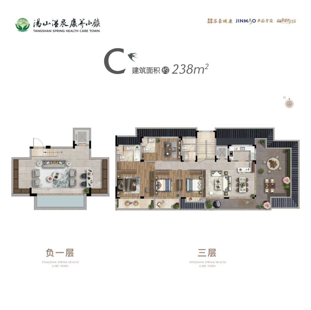 本次推出的C地块问泉苑,甄址小镇正芯,紧邻小镇核心配套,集萃山水胜境,以中央之地,开篇一座低密传奇! 目前,建面约约238㎡观山大平层和约285㎡南北双院墅即将上市,户型亮点十足!精装别墅,拥享私家电梯,充满仪式感,纯正的墅级体验!放眼整个南京,C地块问泉苑大平层+露台+地下室的设计算是独一档。