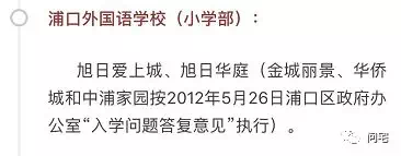 依据教育局今年划定的施教区来看,浦外小学部今年的施教小区为:旭日爱上城、旭日华庭(金城丽景、华侨城和中浦家园按2012年5月26日浦口区政府办公室“入学问题答复意见”执行)。