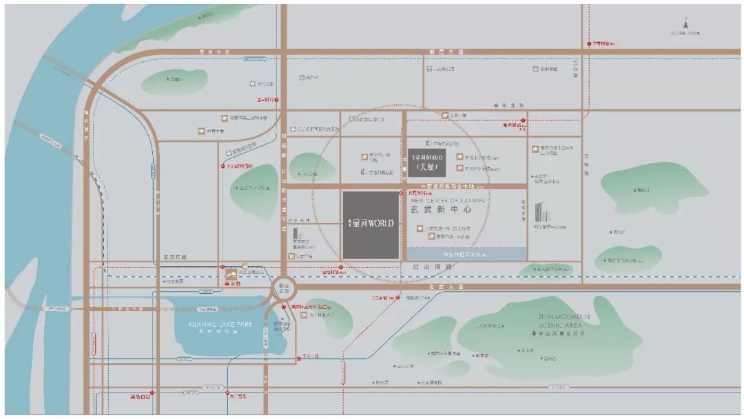 南京星河WORLD位于红山支路和恒嘉路交汇处,处在主城玄武新中心规划的核心区域,其中包括 G101【星河天赋】和 G16 两幅地块组成。