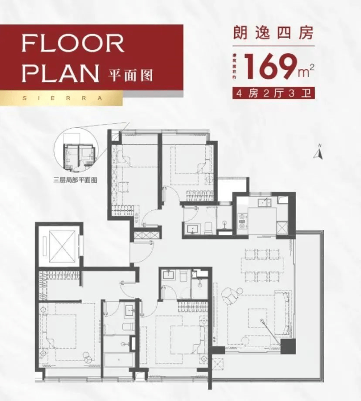 其中,建面约169㎡的户型,带有270°L型转角阳台,一眼心动!