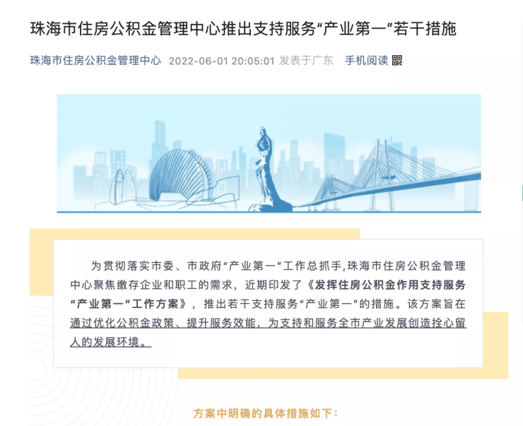 据珠海市住房公积金管理中心消息,近日珠海市印发了《发挥住房公积金作用支持服务“产业排名前列”工作方案》(简称《方案》)。