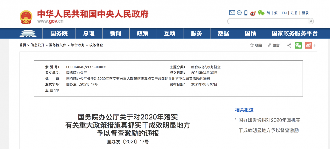 国务院办公厅近日印发通报,对2020年落实稳就业保民生、打好三大攻坚战、深化“放管服”改革优化营商环境、推动创新驱动发展、实施乡村振兴战略等有关重大政策措施真抓实干、取得明显成效的216个地方予以督查激励,相应采取资金、项目、土地、改革先行先试等30项奖励支持措施。