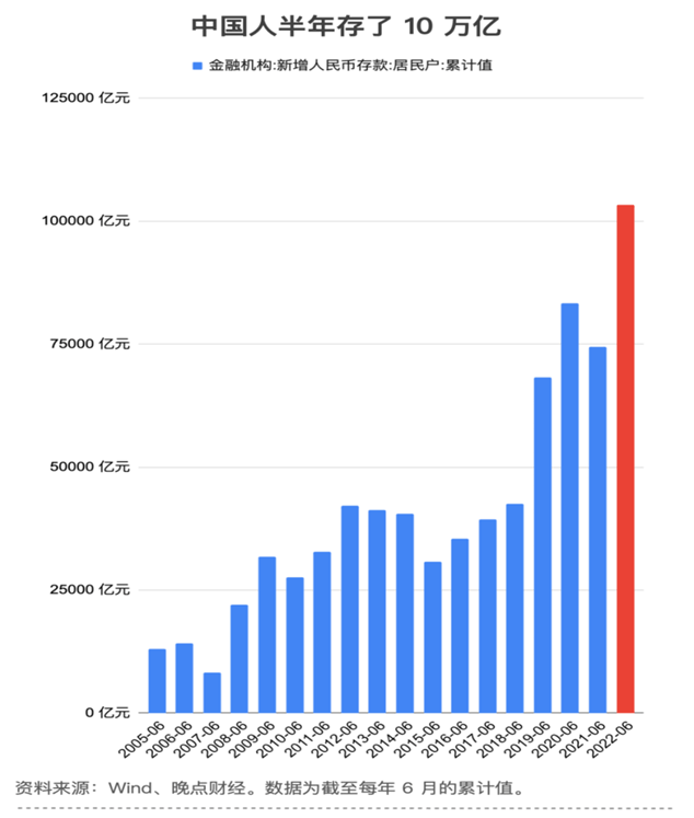 2022年上半年的住户存款新增多达到了10.33万亿,远远超过了过去3年同期。跟去年同期相比,大增了近2.9万亿。