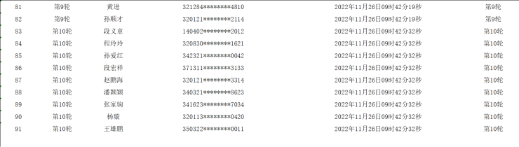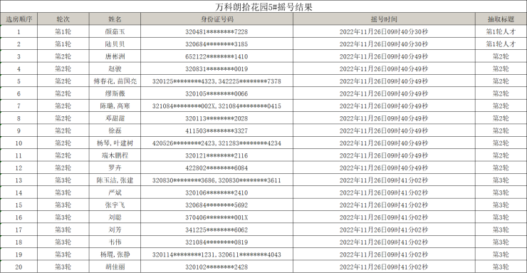 万科朗拾报名结束,摇号已于2022年11月26日上午9:40开始,摇号结果公布如下: