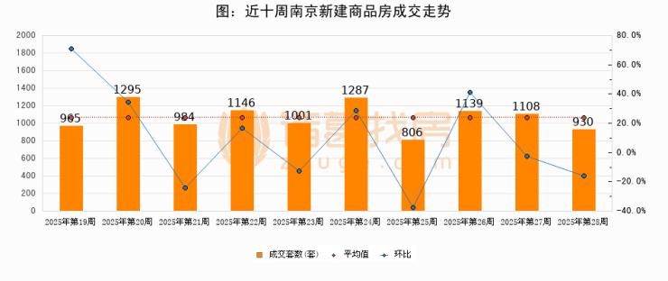 进入2025年第28周(07月07日-07月13日),南京新建商品房成交930套,较上周减少178套,环比下降16.1%
