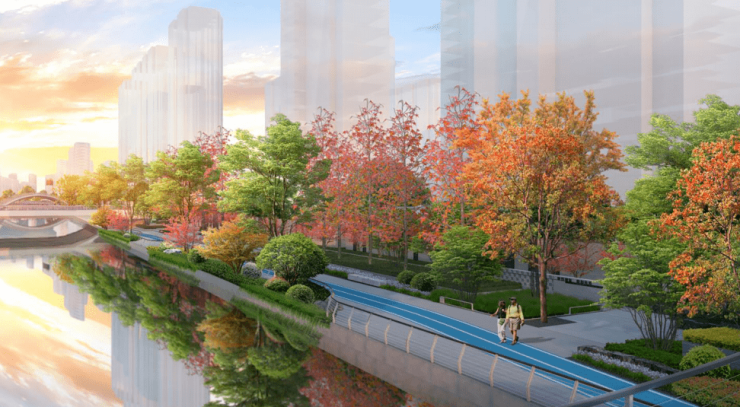 随着这条“新十里秦淮”逐步落地,生活回归水岸,大校场进入水岸时代,并由此延伸出一个自然流淌的国际化理想生活界面。