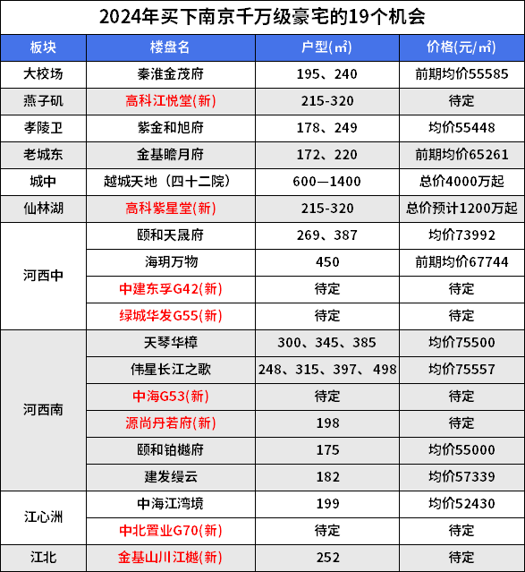纯新盘方面,主要集中在河西,以及高科在仙林湖和燕子矶的两大纯新盘。