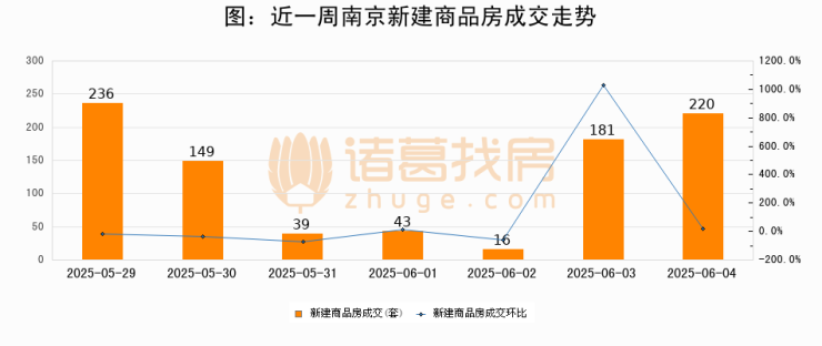 【南京成交日报】06月04日新房成交220套、二手房340套;涨价房源75套