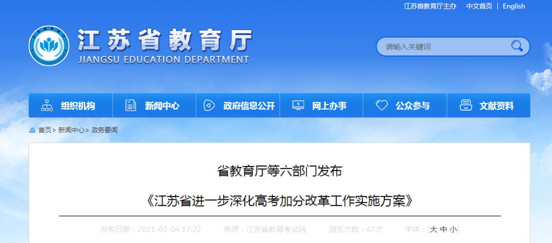 江苏省六部门发布《江苏省进一步深化高考加分改革工作实施方案》