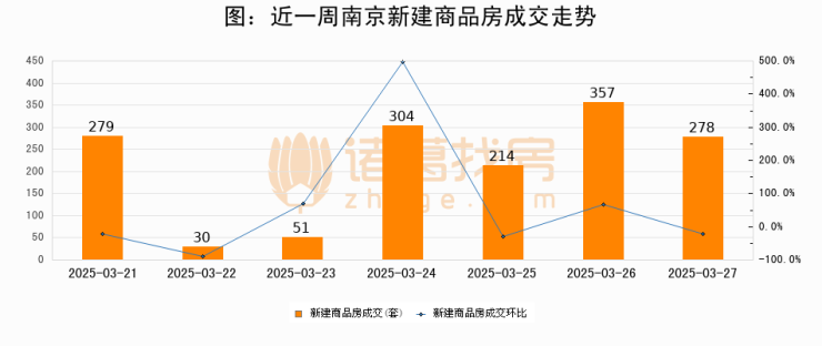 【南京成交日报】03月27日新房成交278套、二手房367套;涨价房源109套