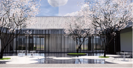 在整个社区中,亮点之一还有入户庭院空间+双分离大堂,让业主在每天回家时就穿过庭院里的一片水景,享受这种柔和的生活之美。