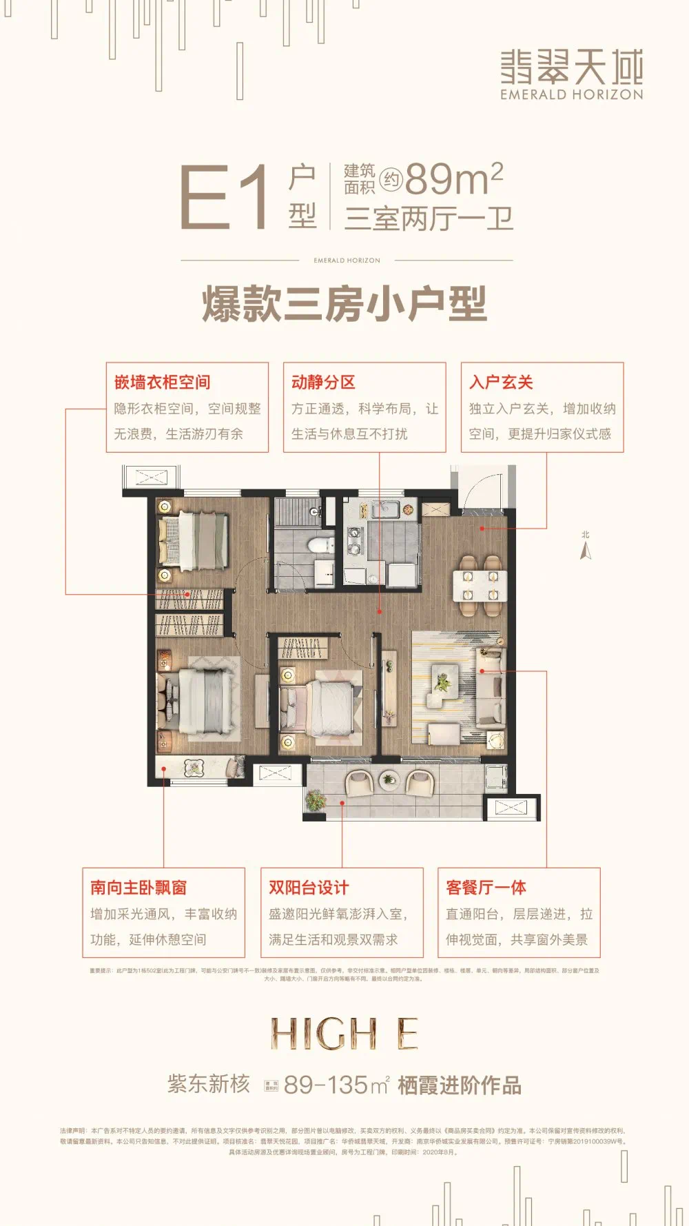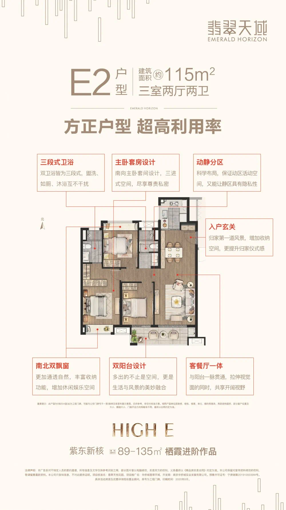 据悉,此次E地块的1-5栋,推出的是建筑面积约89-115-128-135㎡户型,三房至四房户型,销许均价约24300元/㎡,为一梯两户,装修交付,配备空调、地暖、正压除霾新风。