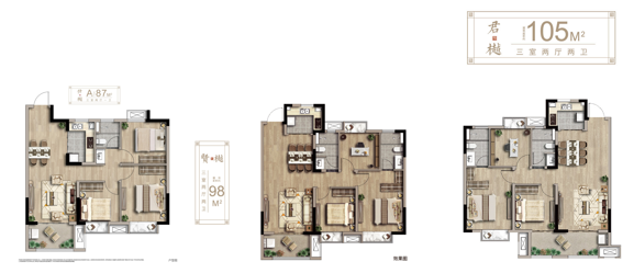 江宁孔雀城紫樾澜庭精造高空间利用率产品,目前在售建筑面积约87-105㎡精妆三房,户型方正,三开间朝南,舒适人居。满足城市置业人群对未来的想象,将美好生活无限延展。
