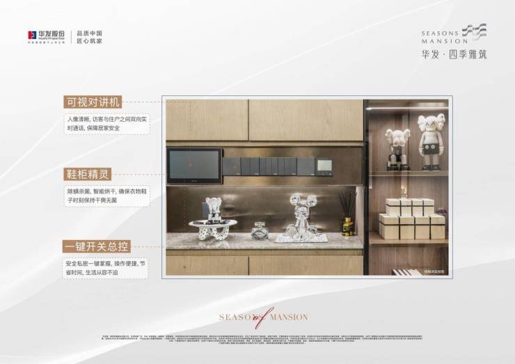 四维智能装置、一键开关总控、可视对讲、玄关鞋柜精灵等,“智能化”出行、安全归家。此外,为补充室内收纳空间,华发·四季雅筑创新性打造两大柜体收纳系统、四大厨卫收纳空间,家居生活井然有序,小空间亦有大享受!