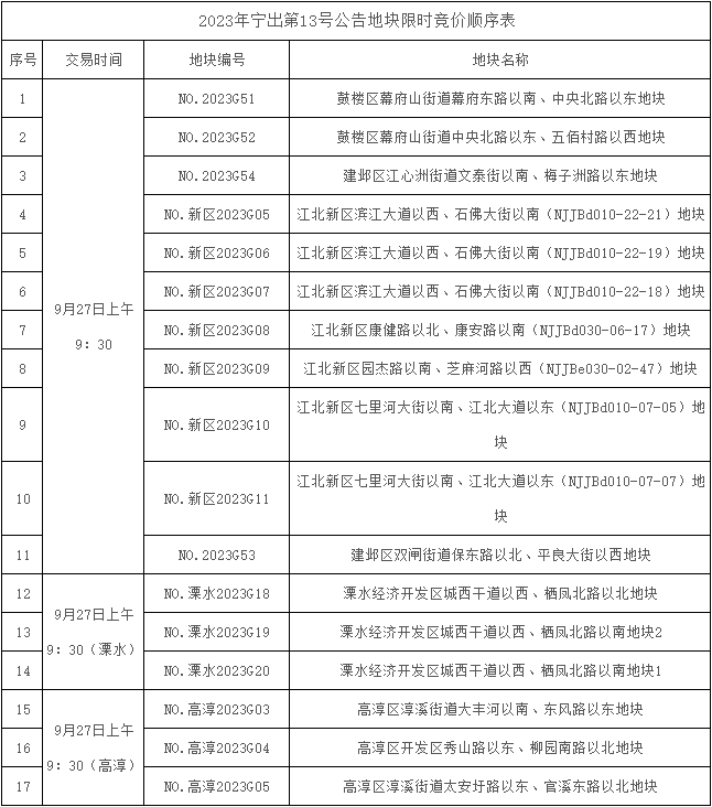 为进一步优化营商环境,更好地服务市场和企业,现对2023宁出第13号出让公告网上限时竞价和摇号时间安排如下: