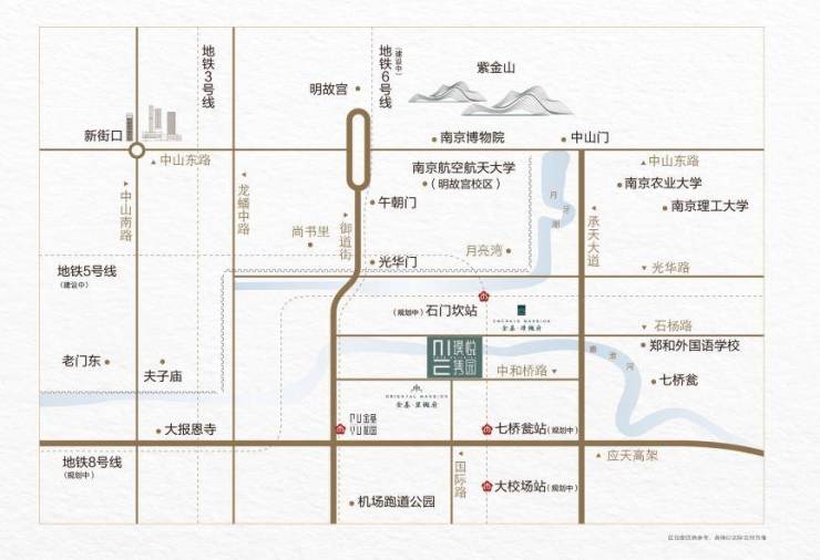 直距约300米可达地铁5号线(在建)、8号线(规划),轴承经纬,连通新街口、河西等城市心极。