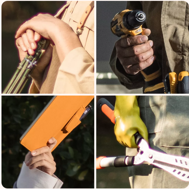 他将手持割草机绑在身上,双手握紧手柄,利用腰力左右摇摆,草渣随着嗡嗡嗡的声音四散开来,空气里弥漫着青草的味道。