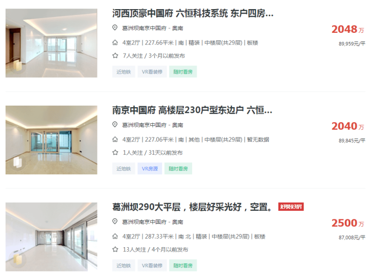 作为能建城发旗下最高端的产品系,此前中国府次次开盘都引领南京豪宅市场,目前二手房挂牌价更是起步2000万。