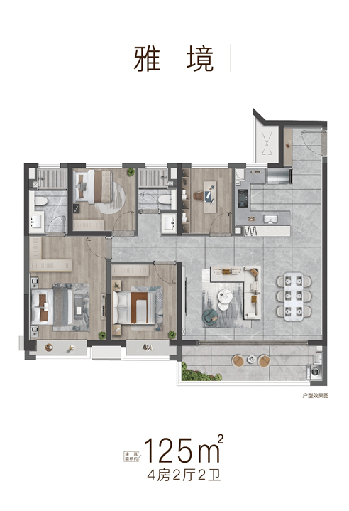 这也是项目上卖得较好的一个户型,板块内少有四房横厅,不仅从功能性的角度来说,比普通三房多一个房间,从两口之家到三代同堂都不是问题。而且现在房价这么高,一步到位买四房,可以缩短5~10年的换房周期。